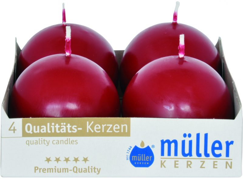 Lumanare sfera visiniu 60 mm set 4buc -arde 8 h/ buc