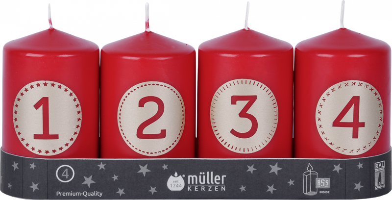 Lumanare stalp Advent set 4 buc -rosu