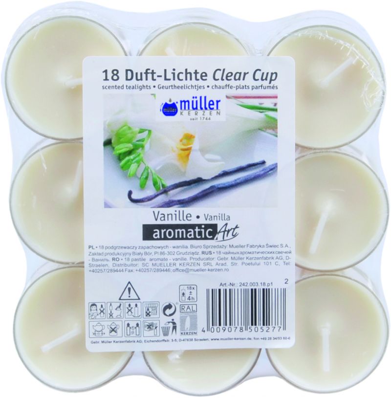 Lumanare set 18 pastile aromate vanilie in cupa de plastic +/-6 h