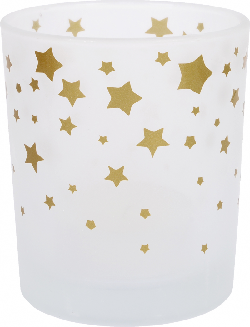 Maxipahar Stardust de culoare alb mat decorat cu stele aurii , in care se poat aseza lumanari stalpi sau maxipastile . Dimensiounea 11/9.5 cm , foarte potrivit pentru cadouri si foarte de efect pentru masa de craciun