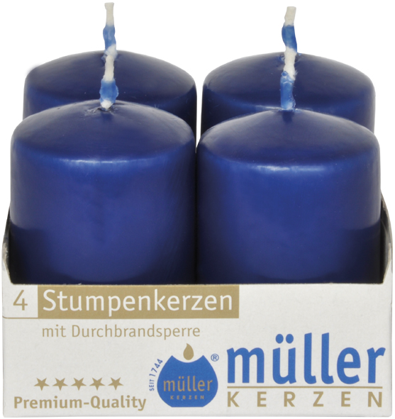 Lumanare stalp 62/40 mm indigo set 4 buc -arde 8h /buc