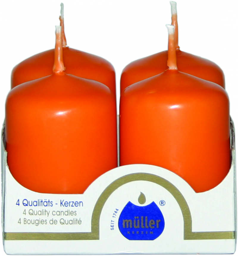 Lumanare stalp 62/40 mm portocaliu set 4 buc -arde 8h /buc